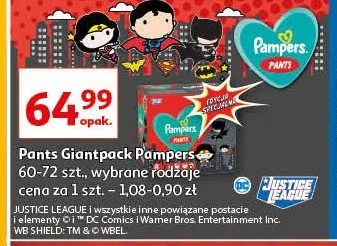 Przegl膮daj podobne oferty promocyjne do Pieluchomajtki 6 dc justice league Pampers pants!
