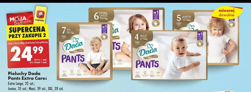 Przegl膮daj podobne oferty promocyjne do Pieluchomajtki dla dzieci junior 5 Dada extra care!