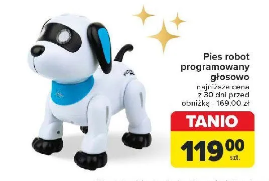 Cena produktu r贸偶ni si臋 w zale偶no艣ci od wybranego sklepu. Niestety nie posiadamy danych o aktualnych promocjach, jednak w艣r贸d archiwalnych ofert Pies robot kosztuje od 29,99 z艂 do 119 z艂.
