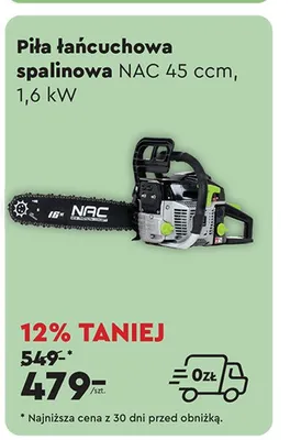 Cena produktu r贸偶ni si臋 w zale偶no艣ci od wybranego sklepu. Niestety nie posiadamy danych o aktualnych promocjach, jednak w艣r贸d archiwalnych ofert Pi艂a 艂a艅cuchowa spalinowa Nac kosztuje od 479 z艂.