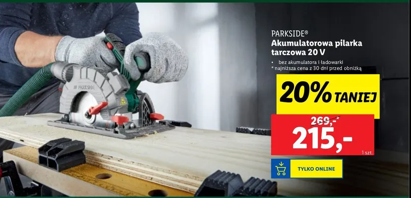 Gdzie mo偶na tanio kupi膰 produkt Pilarka tarczowa akumulatorowa 20 v Parkside?