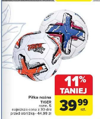 Zastanawiasz się, gdzie kupić i ile kosztuje produkt Piłka nożna? Regularnie sprawdzamy, czy jest promocja na ten produkt w Biedronka, Lidl, Kaufland, Auchan, Netto, Makro i innych sklepach. Aktualnie posiadamy 1 ofertę promocyjną na ten produkt. Ceny zaczynają się od 29,99zł!
