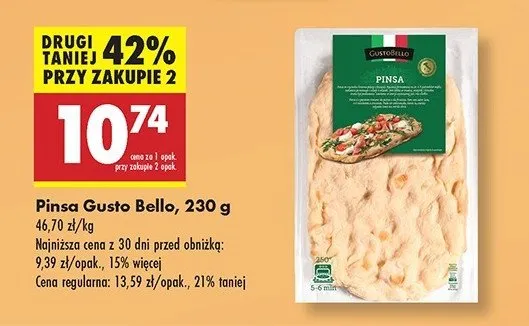 Cena produktu r贸偶ni si臋 w zale偶no艣ci od wybranego sklepu. Niestety nie posiadamy danych o aktualnych promocjach, jednak w艣r贸d archiwalnych ofert Pinsa Gustobello kosztuje od 9,39 z艂 do 13,59 z艂.