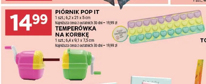 Cena produktu r贸偶ni si臋 w zale偶no艣ci od wybranego sklepu. Niestety nie posiadamy danych o aktualnych promocjach, jednak w艣r贸d archiwalnych ofert Pi贸rnik pop-it kosztuje od 14,99 z艂.