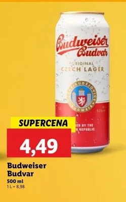 Zastanawiasz si臋, gdzie kupi膰 i ile kosztuje produkt Piwo Budweiser? Regularnie sprawdzamy, czy jest promocja na ten produkt w Biedronka, Lidl, Kaufland, Auchan, Netto, Makro i innych sklepach. Aktualnie posiadamy 1 ofert臋 promocyjn膮 na ten produkt. Ceny zaczynaj膮 si臋 od 3,99z艂!