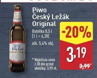 Cena produktu r贸偶ni si臋 w zale偶no艣ci od wybranego sklepu. Produkt Piwo Cesky lezak original mo偶esz kupi膰 w promocji ju偶 od 3,19 z艂. Najta艅sza oferta, jak膮 mamy w naszej bazie jest z sieci Aldi. Piwo Cesky lezak original kosztuje aktualnie 3,19 z艂. Zobacz ofert臋
