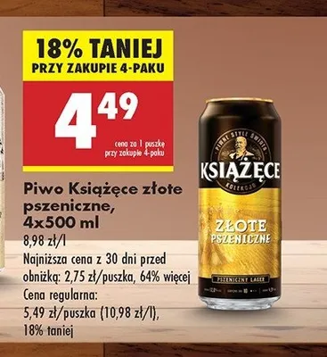 Piwo Książęce złote pszeniczne promocje w sklepach - znajdź ofertę dla siebie!