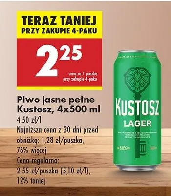Gdzie mo偶na tanio kupi膰 produkt Piwo KUSTOSZ LAGER?