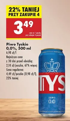 Przegl膮daj oferty promocyjne na produkt Piwo Tyskie 0.0%