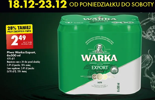 Przegl膮daj oferty promocyjne na produkt Piwo Warka export