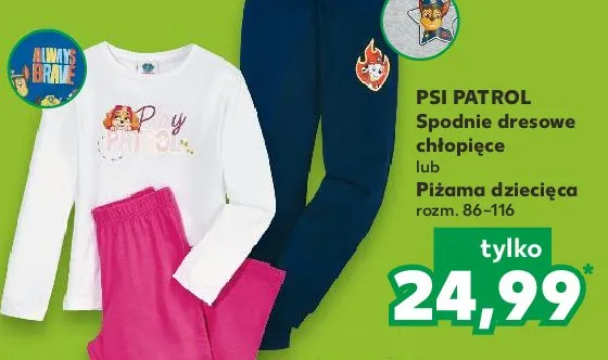 Cena produktu różni się w zależności od wybranego sklepu. Niestety nie posiadamy danych o aktualnych promocjach, jednak wśród archiwalnych ofert Piżama dziecięca 86-116 psi patrol kosztuje od 24,99 zł.
