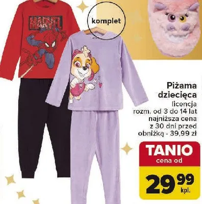 Nie wiesz gdzie kupić produkt Piżama dziecięca spider-man w promocji? Aktualnie produkt Piżama dziecięca spider-man znajduje się w atrakcyjnej cenie w sklepach Lidl. Oprócz tego produkt można kupić w innych sklepach, jednak aktulanie nie posiadamy informacji o promocjach w nich.