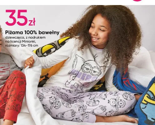 Cena produktu różni się w zależności od wybranego sklepu. Niestety nie posiadamy danych o aktualnych promocjach, jednak wśród archiwalnych ofert Piżama dziewczęca 134-176 minionki kosztuje od 35 zł.