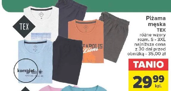 Piżama męska s-xxxl Tex promocje w sklepach - znajdź ofertę dla siebie!