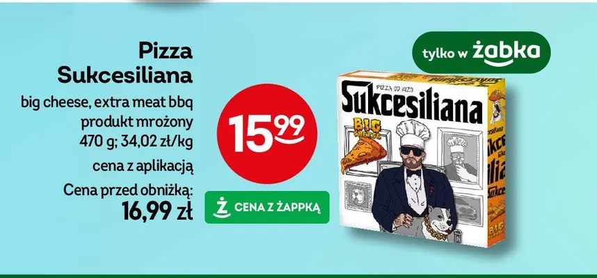 Cena produktu r贸偶ni si臋 w zale偶no艣ci od wybranego sklepu. Niestety nie posiadamy danych o aktualnych promocjach, jednak w艣r贸d archiwalnych ofert Pizza big cheese Sukcesiliana kosztuje od 15,99 z艂.