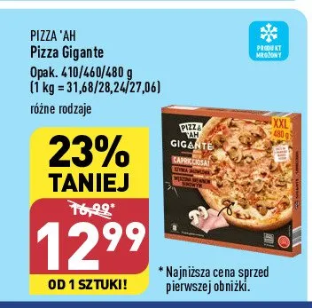 Cena produktu różni się w zależności od wybranego sklepu. Niestety nie posiadamy danych o aktualnych promocjach, jednak wśród archiwalnych ofert Pizza gigante salami z kiełbasą wołową Pizza'ah kosztuje od 10,99 zł do 13,49 zł.