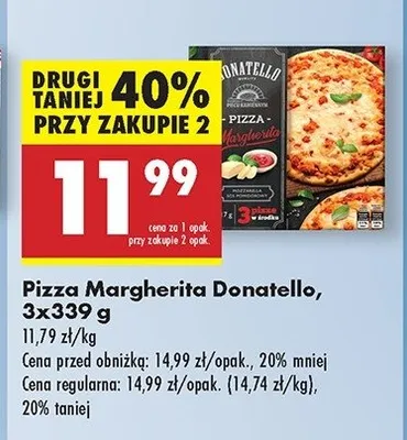 Cena produktu r贸偶ni si臋 w zale偶no艣ci od wybranego sklepu. Niestety nie posiadamy danych o aktualnych promocjach, jednak w艣r贸d archiwalnych ofert Pizza margherita Donatello pizza kosztuje od 9,99 z艂 do 12,99 z艂.