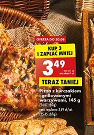 Cena produktu r贸偶ni si臋 w zale偶no艣ci od wybranego sklepu. Niestety nie posiadamy danych o aktualnych promocjach, jednak w艣r贸d archiwalnych ofert Pizza z kurczakiem i grillowanymi warzywami kosztuje od 2,99 z艂 do 3,69 z艂.