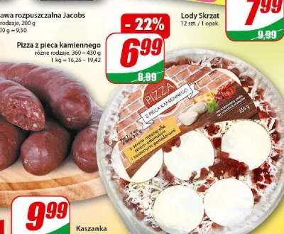 Cena produktu r贸偶ni si臋 w zale偶no艣ci od wybranego sklepu. Niestety nie posiadamy danych o aktualnych promocjach, jednak w艣r贸d archiwalnych ofert Pizza z pieca kamiennego z serem mozzarell膮, edamskim i suszonymi pomidorami kosztuje od 6,99 z艂.
