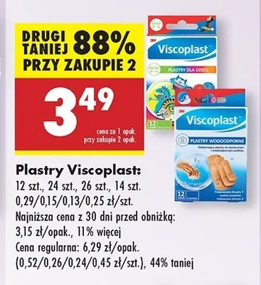 Cena produktu r贸偶ni si臋 w zale偶no艣ci od wybranego sklepu. Niestety nie posiadamy danych o aktualnych promocjach, jednak w艣r贸d archiwalnych ofert Plastry dla dzieci Viscoplast kosztuje od 2,99 z艂 do 3,49 z艂.