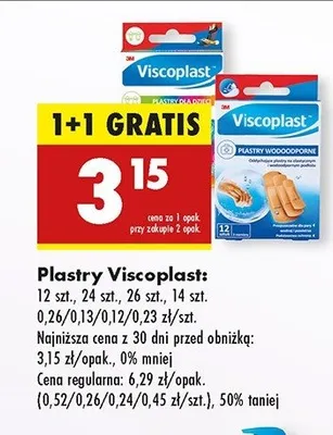 Cena produktu r贸偶ni si臋 w zale偶no艣ci od wybranego sklepu. Niestety nie posiadamy danych o aktualnych promocjach, jednak w艣r贸d archiwalnych ofert Plastry opatrunkowe Viscoplast kosztuje od 2,99 z艂 do 3,49 z艂.