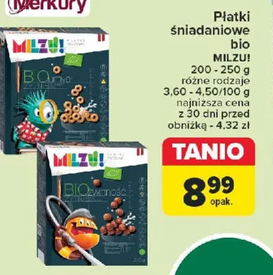 Cena produktu różni się w zależności od wybranego sklepu. Niestety nie posiadamy danych o aktualnych promocjach, jednak wśród archiwalnych ofert Płatki biożytnie umysł Milzu! kosztuje od 6 zł do 11,99 zł.
