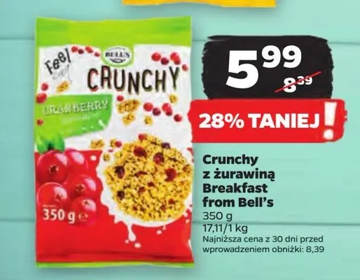 Ile kosztuje Płatki crunchy z żurawiną Breakfast from bell's?