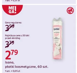 Cena produktu r贸偶ni si臋 w zale偶no艣ci od wybranego sklepu. Niestety nie posiadamy danych o aktualnych promocjach, jednak w艣r贸d archiwalnych ofert P艂atki kosmetyczne Isana kosztuje od 1,79 z艂 do 3,19 z艂.