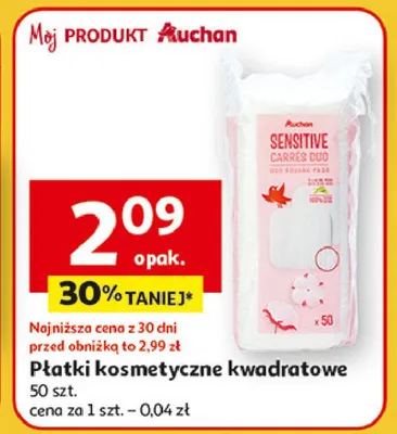 Gdzie mo偶na tanio kupi膰 produkt P艂atki kosmetyczne sensitive kwadrat Auchan?