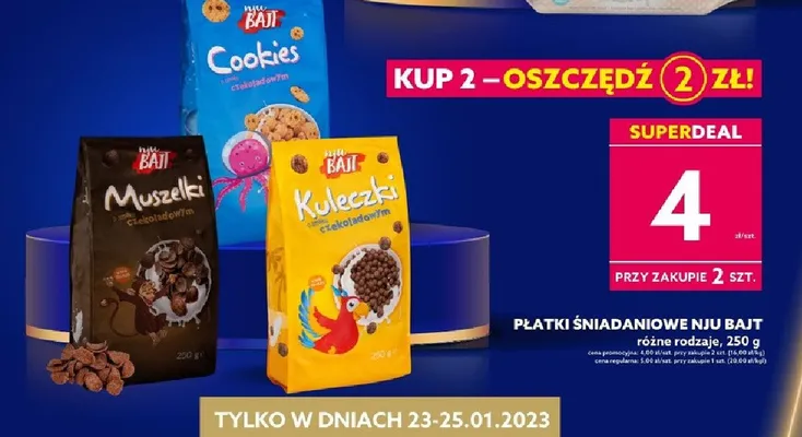 Przegl膮daj oferty promocyjne na produkt P艂atki kuleczki o smaku czekoladowym BRUGGEN NJU BAJT