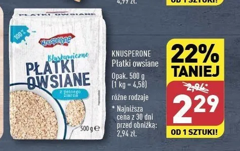 P艂atki owsiane b艂yskawiczne Knusperone promocje w sklepach - znajd藕 ofert臋 dla siebie!