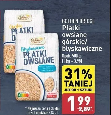 Przegl膮daj oferty promocyjne na produkt P艂atki owsiane g贸rskie GOLDEN BRIDGE