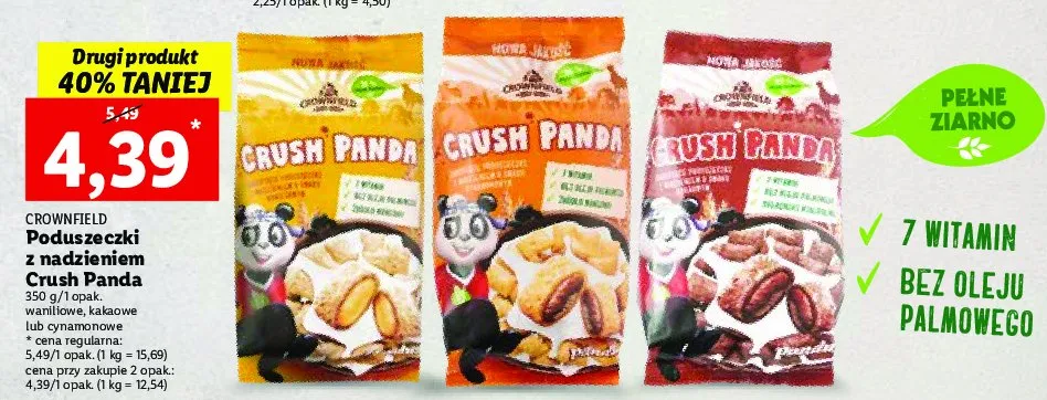 Cena produktu r贸偶ni si臋 w zale偶no艣ci od wybranego sklepu. Produkt P艂atki 艣niadaniowe cynamonowe CROWNFIELD CRUSH PANDA mo偶esz kupi膰 w promocji ju偶 od 5,85 z艂. Najta艅sza oferta, jak膮 mamy w naszej bazie jest z sieci Dino. P艂atki 艣niadaniowe cynamonowe CROWNFIELD CRUSH PANDA kosztuje aktualnie 5,85 z艂. Zobacz ofert臋
