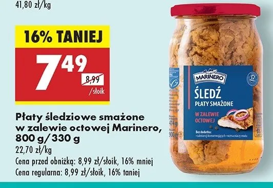 Ile kosztuje Płaty śledziowe smażone w zalewie octowej Marinero?