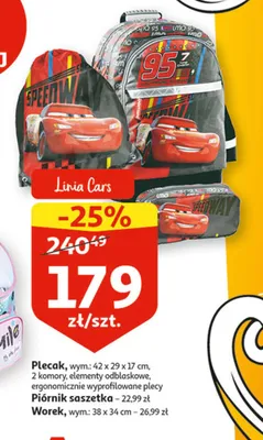 Cena produktu r贸偶ni si臋 w zale偶no艣ci od wybranego sklepu. Niestety nie posiadamy danych o aktualnych promocjach, jednak w艣r贸d archiwalnych ofert Plecak cars kosztuje od 179 z艂.