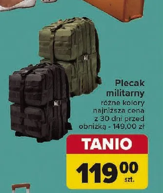 Cena produktu r贸偶ni si臋 w zale偶no艣ci od wybranego sklepu. Niestety nie posiadamy danych o aktualnych promocjach, jednak w艣r贸d archiwalnych ofert Plecak militarny 49 x 30 x 26 cm kosztuje od 119 z艂.