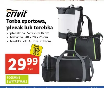 Cena produktu r贸偶ni si臋 w zale偶no艣ci od wybranego sklepu. Niestety nie posiadamy danych o aktualnych promocjach, jednak w艣r贸d archiwalnych ofert Plecak sportowy 52 x 29 x 16 cm Crivit kosztuje od 29,99 z艂.