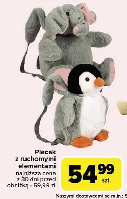 Cena produktu r贸偶ni si臋 w zale偶no艣ci od wybranego sklepu. Niestety nie posiadamy danych o aktualnych promocjach, jednak w艣r贸d archiwalnych ofert Plecak z ruchomymi elementami kosztuje od 54,99 z艂.