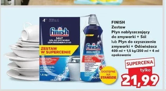 Cena produktu różni się w zależności od wybranego sklepu. Niestety nie posiadamy danych o aktualnych promocjach, jednak wśród archiwalnych ofert Płyn do czyszczenia + odświeżacz Finish dual action kosztuje od 19,99 zł do 24,99 zł.
