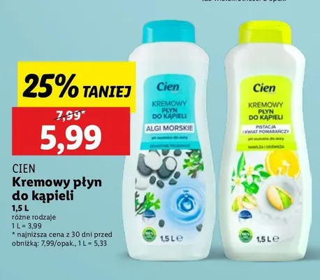 Cena produktu r贸偶ni si臋 w zale偶no艣ci od wybranego sklepu. Niestety nie posiadamy danych o aktualnych promocjach, jednak w艣r贸d archiwalnych ofert P艂yn do k膮pieli algi morskie z olejkiem makadamia Cien kosztuje od 5,99 z艂.