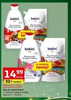 Cena produktu różni się w zależności od wybranego sklepu. Niestety nie posiadamy danych o aktualnych promocjach, jednak wśród archiwalnych ofert Płyn do kąpieli i żel do mycia ciała truskawka + płyn do kąpieli i żel do mycia ciała cytrusy zapas Bobini fun kosztuje od 14,99 zł.