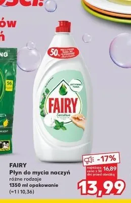 Cena produktu r贸偶ni si臋 w zale偶no艣ci od wybranego sklepu. Niestety nie posiadamy danych o aktualnych promocjach, jednak w艣r贸d archiwalnych ofert P艂yn do mycia mi臋ta Fairy kosztuje od 12,99 z艂 do 13,99 z艂.