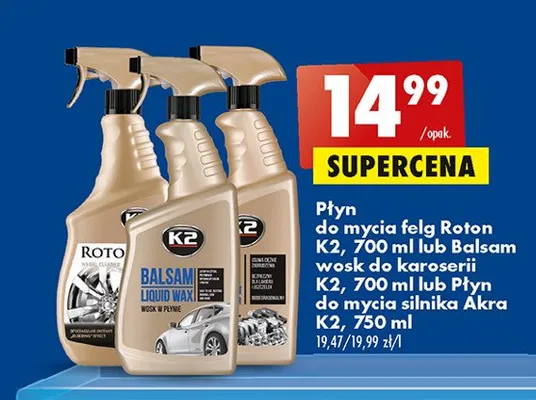 Zastanawiasz si臋, gdzie kupi膰 i ile kosztuje produkt P艂yn do mycia silnik贸w K2 AKRA? Regularnie sprawdzamy, czy jest promocja na ten produkt w Biedronka, Lidl, Kaufland, Auchan, Netto, Makro i innych sklepach. Aktualnie nie posiadamy ofert promocyjnych na ten produkt.