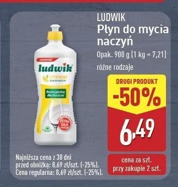Cena produktu r贸偶ni si臋 w zale偶no艣ci od wybranego sklepu. Niestety nie posiadamy danych o aktualnych promocjach, jednak w艣r贸d archiwalnych ofert P艂yn do naczy艅 cytrynowy Ludwik kosztuje od 5,49 z艂 do 6,49 z艂.