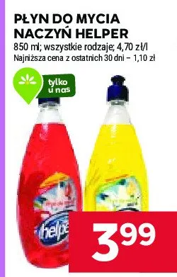 Cena produktu różni się w zależności od wybranego sklepu. Niestety nie posiadamy danych o aktualnych promocjach, jednak wśród archiwalnych ofert Płyn do naczyń żółty HELPER kosztuje od 3,99 zł do 4,99 zł.