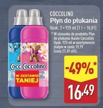 Cena produktu różni się w zależności od wybranego sklepu. Niestety nie posiadamy danych o aktualnych promocjach, jednak wśród archiwalnych ofert Płyn do płukania passion flower & bergamot + płyn do płukania tiare flower & red fruits Coccolino perfume & care kosztuje od 16,49 zł do 19,99 zł.