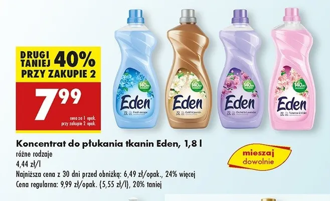 Przegl膮daj oferty promocyjne na produkt P艂yn do p艂ukania tkanin tuberose & violet Eden olejki naturalne