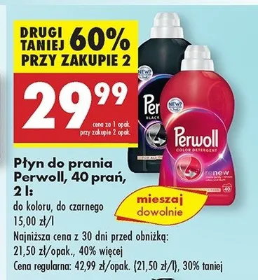 Zastanawiasz si臋, gdzie kupi膰 i ile kosztuje produkt P艂yn do prania Perwoll renew black? Regularnie sprawdzamy, czy jest promocja na ten produkt w Biedronka, Lidl, Kaufland, Auchan, Netto, Makro i innych sklepach. Aktualnie posiadamy 5 ofert promocyjnych na ten produkt. Ceny zaczynaj膮 si臋 od 41,99z艂!