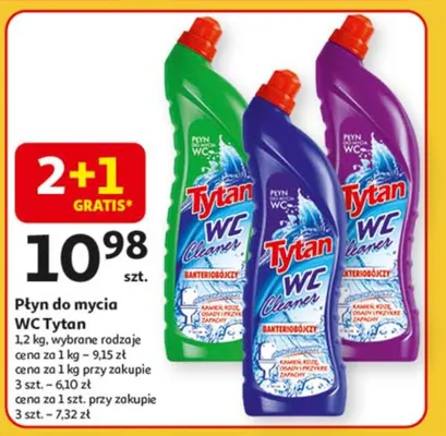 Cena produktu r贸偶ni si臋 w zale偶no艣ci od wybranego sklepu. Niestety nie posiadamy danych o aktualnych promocjach, jednak w艣r贸d archiwalnych ofert P艂yn do wc fioletowy Tytan wc kosztuje od 5,03 z艂 do 8,99 z艂.