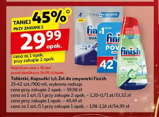 Cena produktu r贸偶ni si臋 w zale偶no艣ci od wybranego sklepu. Niestety nie posiadamy danych o aktualnych promocjach, jednak w艣r贸d archiwalnych ofert P艂yn do zmywarek Finish power effect kosztuje od 26,99 z艂 do 32,99 z艂.